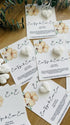 Geri dönüştürülmüş kağıda yerleştirilen kalp/yaprak formundaki tohum bombası ile hazırlanır. İsim–tarih baskılıdır ve misafirleriniz karttaki tohumu 1 gün suda bekletip toprağa hafifçe gömerek, düzenli nem verip gün ışığında filizlendirebilir. Hem hatıra hem de doğaya minik bir armağan!