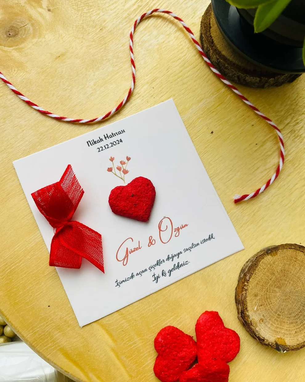 My Design - Kırmızı Kalpli Kurdele Detaylı Tohum Kartı