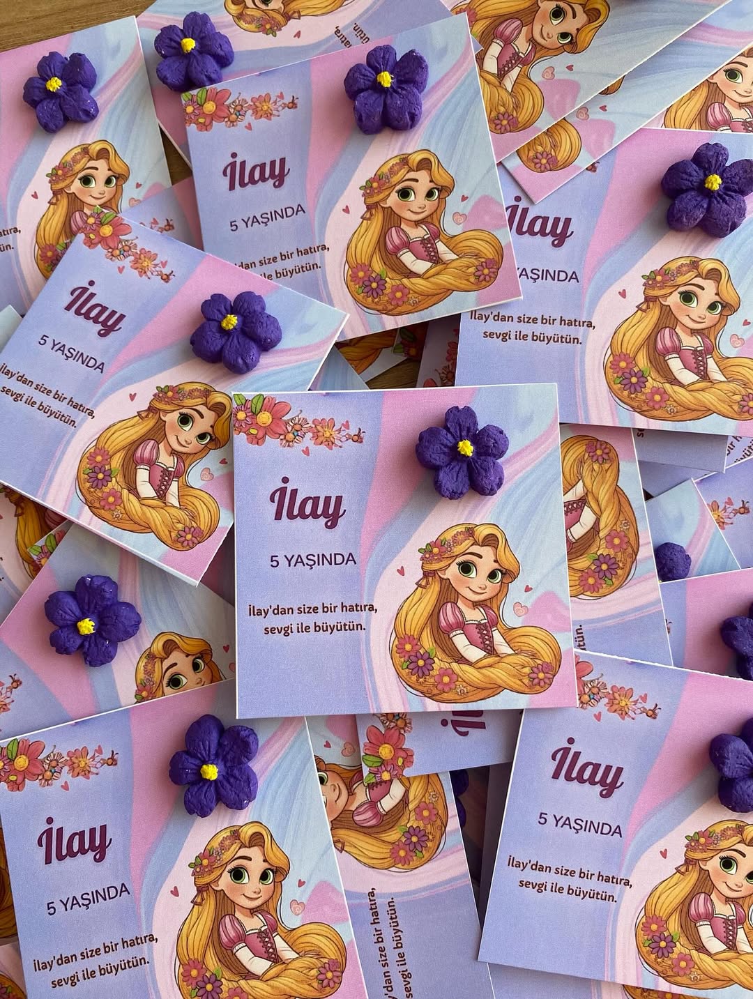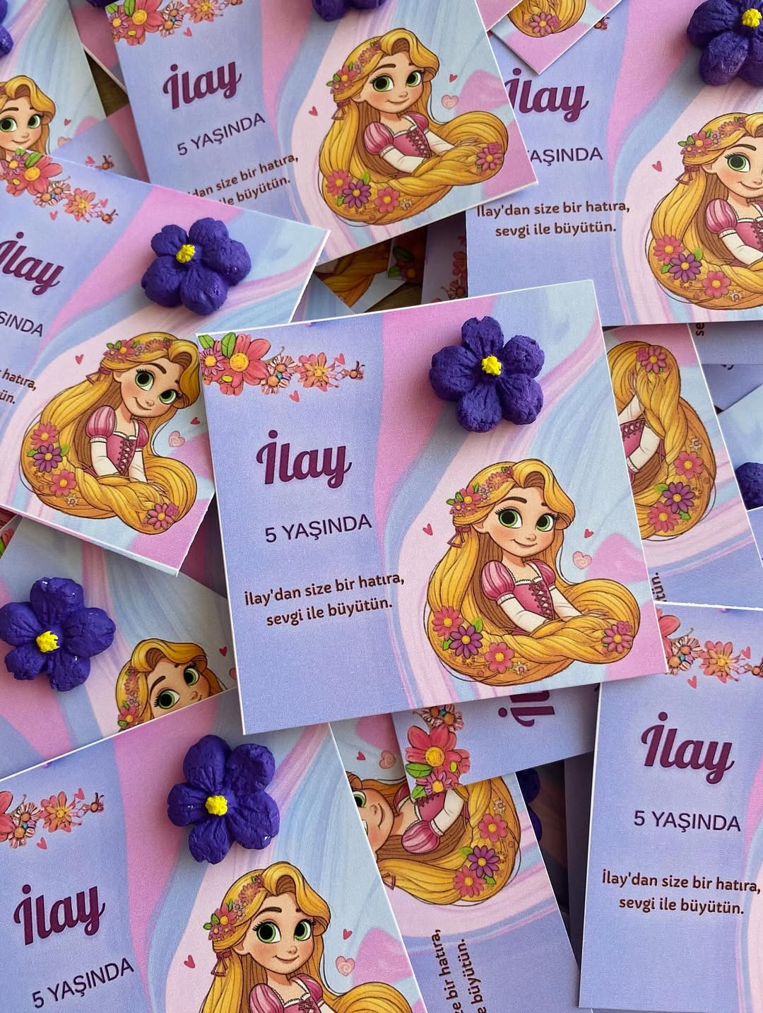 My Design - Mor Çiçekli Prenses Desenli Doğum Günü Tohum Kartı