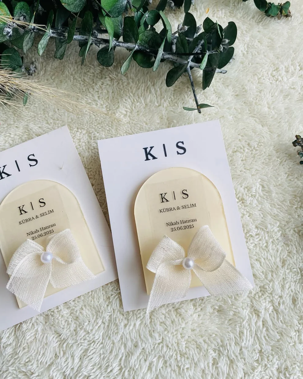 Işıltısını zarafetten alan My Design pleksi magnet modelleri isim–tarih baskılı kişiselleştirme ve güçlü mıknatıs ile davetinizin en şık hatırası oluyor. Şeffaf / oval formlar, krem tonlarında kurdele ve inci dokunuşlarıyla modern ve minimal bir görünüm sunar. Tüm modeller buzdolabı dahil metal yüzeylere sağlamca tutunur.