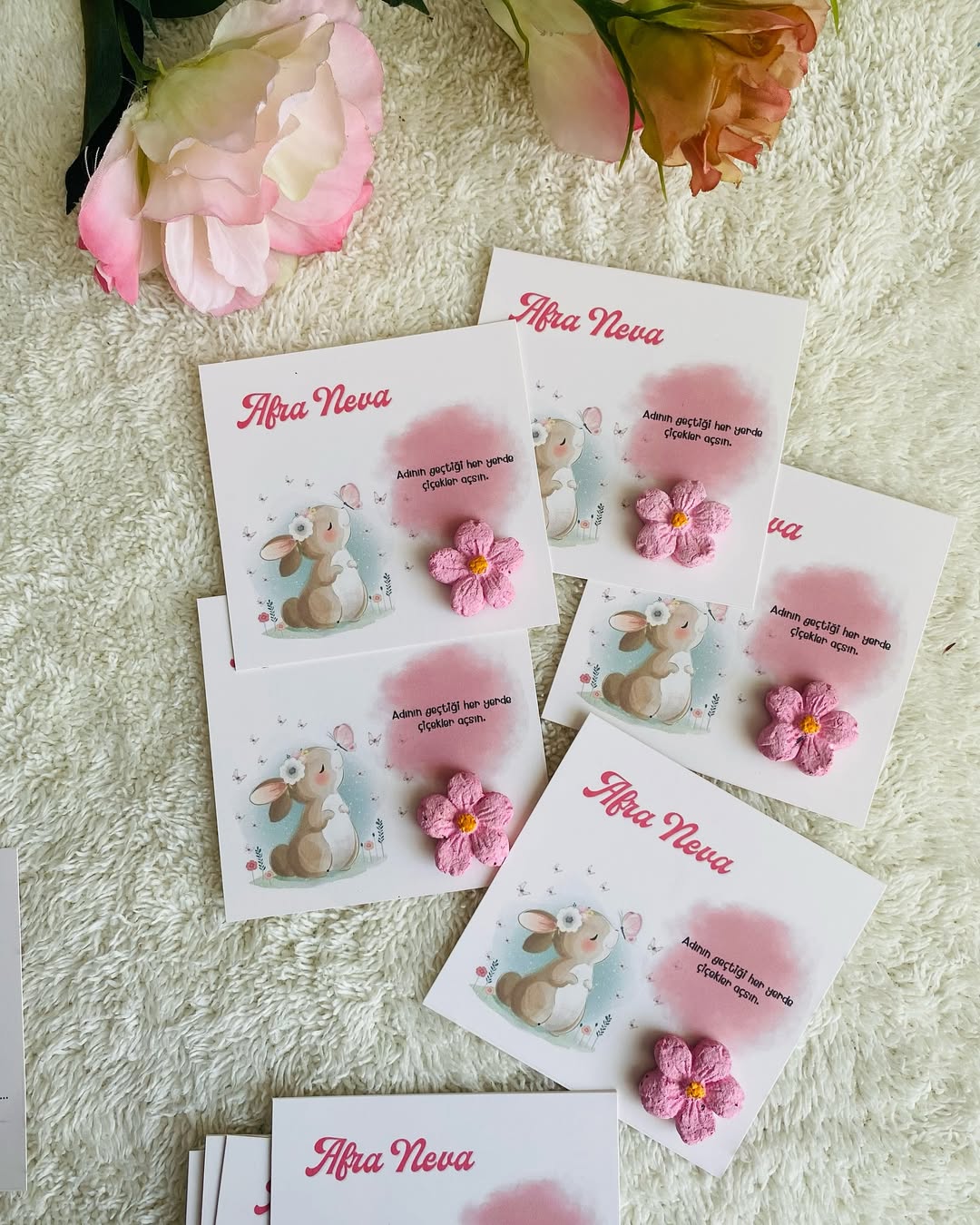 My Design - Sevimli Tavşan Desenli Yenidoğan Çiçekli Tohum Kartı