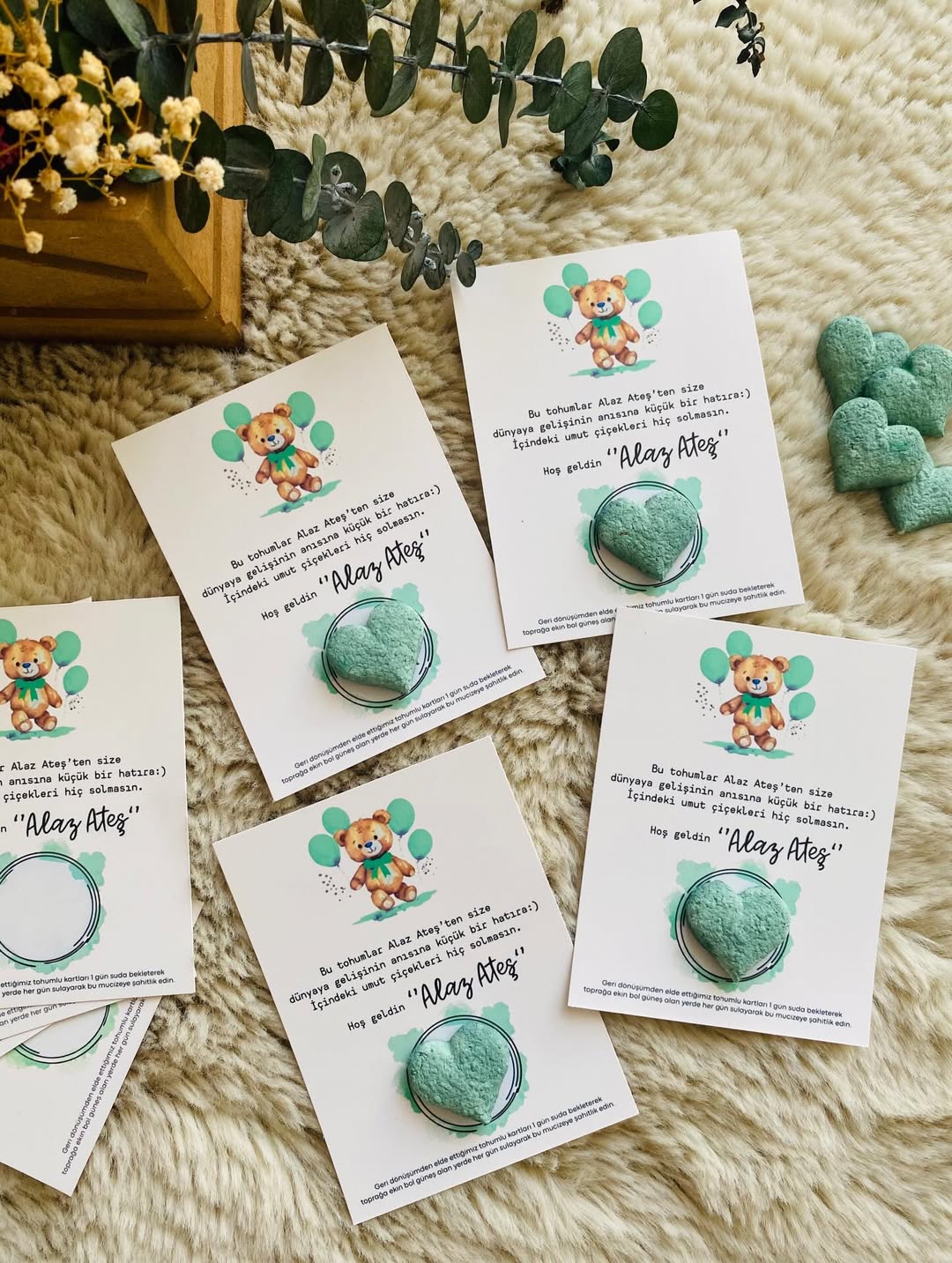 My Design - Yeşil Ayıcık Detaylı Yenidoğan Tohum Kartı