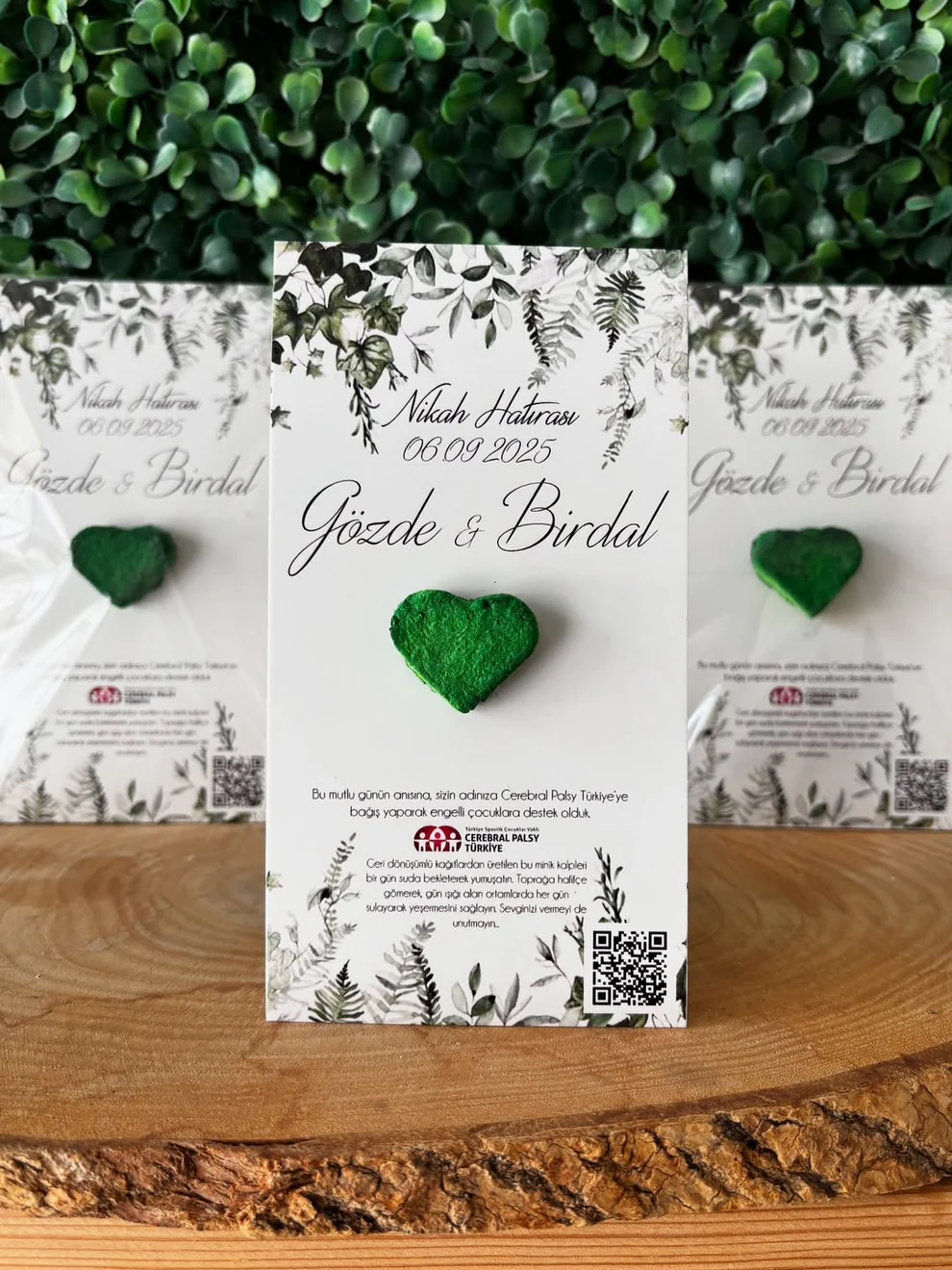 Geri dönüştürülmüş kağıt ile hazırlanan tohum bombaları farklı şekil ve modellerde hazırlanarak misafirleriniz için unutulmaz bir anıya dönüşür.