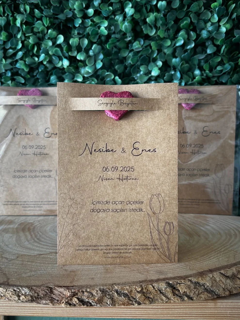 Geri dönüştürülmüş kağıt ile hazırlanan tohum bombaları farklı şekil ve modellerde hazırlanarak misafirleriniz için unutulmaz bir anıya dönüşür.