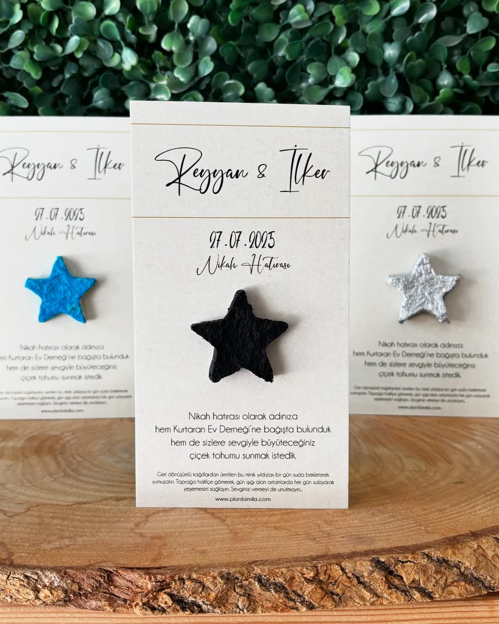Geri dönüştürülmüş kağıt ile hazırlanan tohum bombaları farklı şekil ve modellerde hazırlanarak misafirleriniz için unutulmaz bir anıya dönüşür.