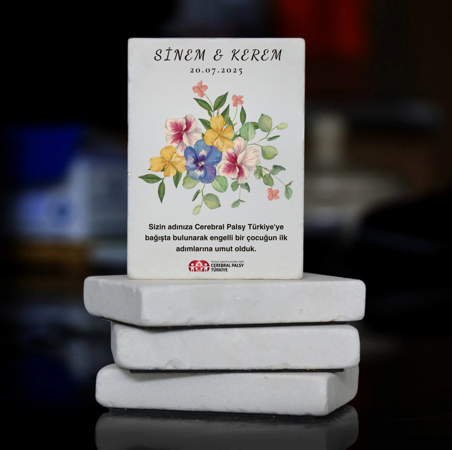 Özel gününüzde hem anlamlı hem de kalıcı bir hatıra istiyorsanız doğal taş üzerine özel baskı ile hazırlanan magnet modelleri tam size göre. Türkiye Spastik Çocuklar Vakfı magnet modellerini isim–tarih ve metinle tamamen size özel tasarlıyor. Magnetler arkasında güçlü mıknatıs bulunuyor. Buzdolabı ya da panolarda yıllarca ilk günkü gibi sergilenebiliyor.