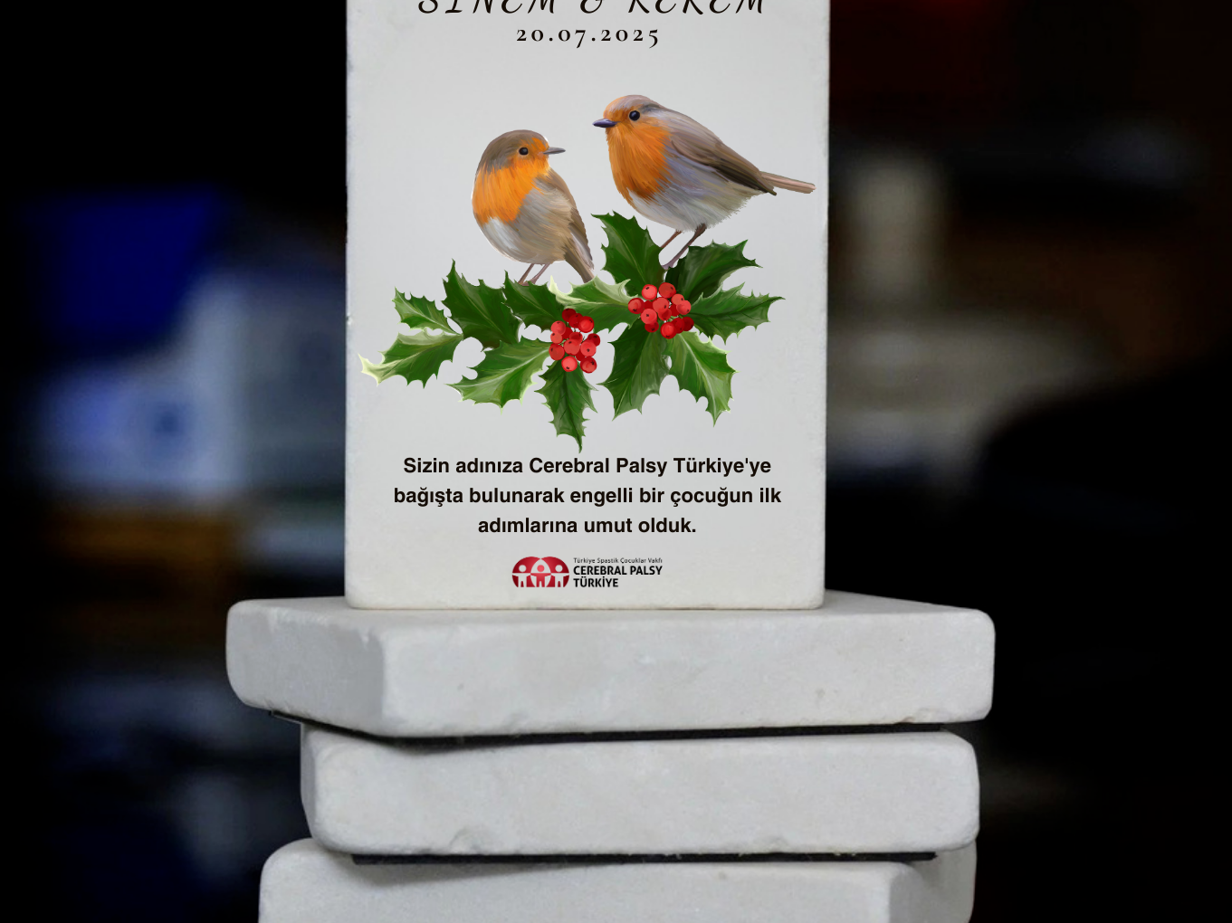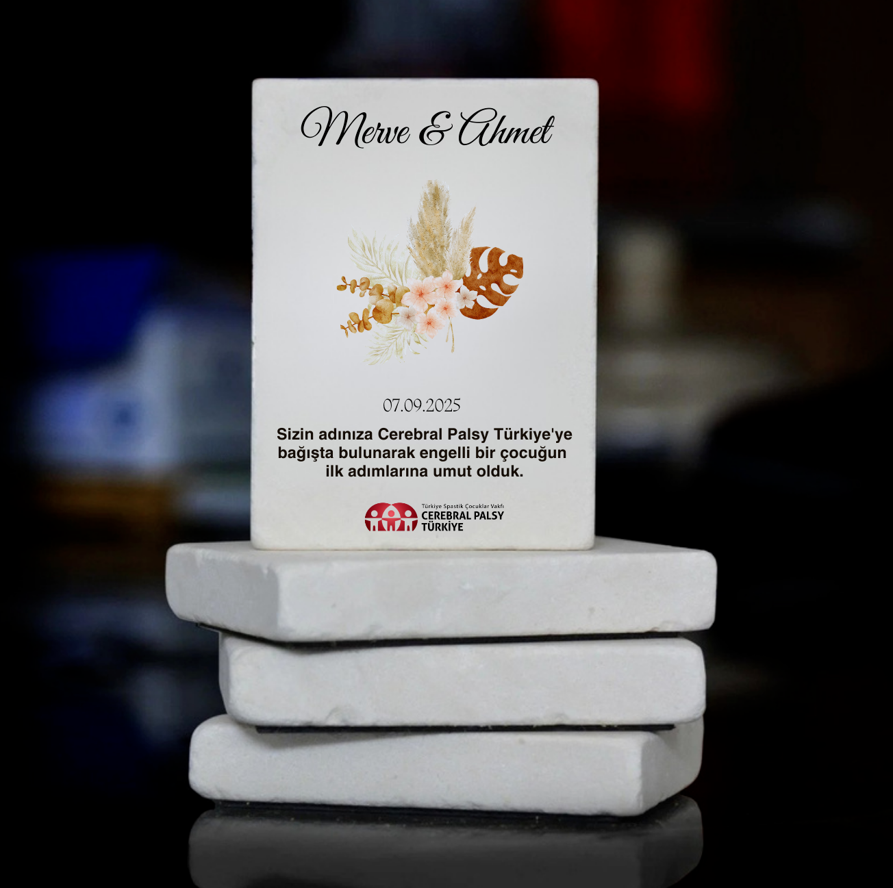 Özel gününüzde hem anlamlı hem de kalıcı bir hatıra istiyorsanız doğal taş üzerine özel baskı ile hazırlanan magnet modelleri tam size göre. Türkiye Spastik Çocuklar Vakfı magnet modellerini isim–tarih ve metinle tamamen size özel tasarlıyor. Magnetler arkasında güçlü mıknatıs bulunuyor. Buzdolabı ya da panolarda yıllarca ilk günkü gibi sergilenebiliyor.