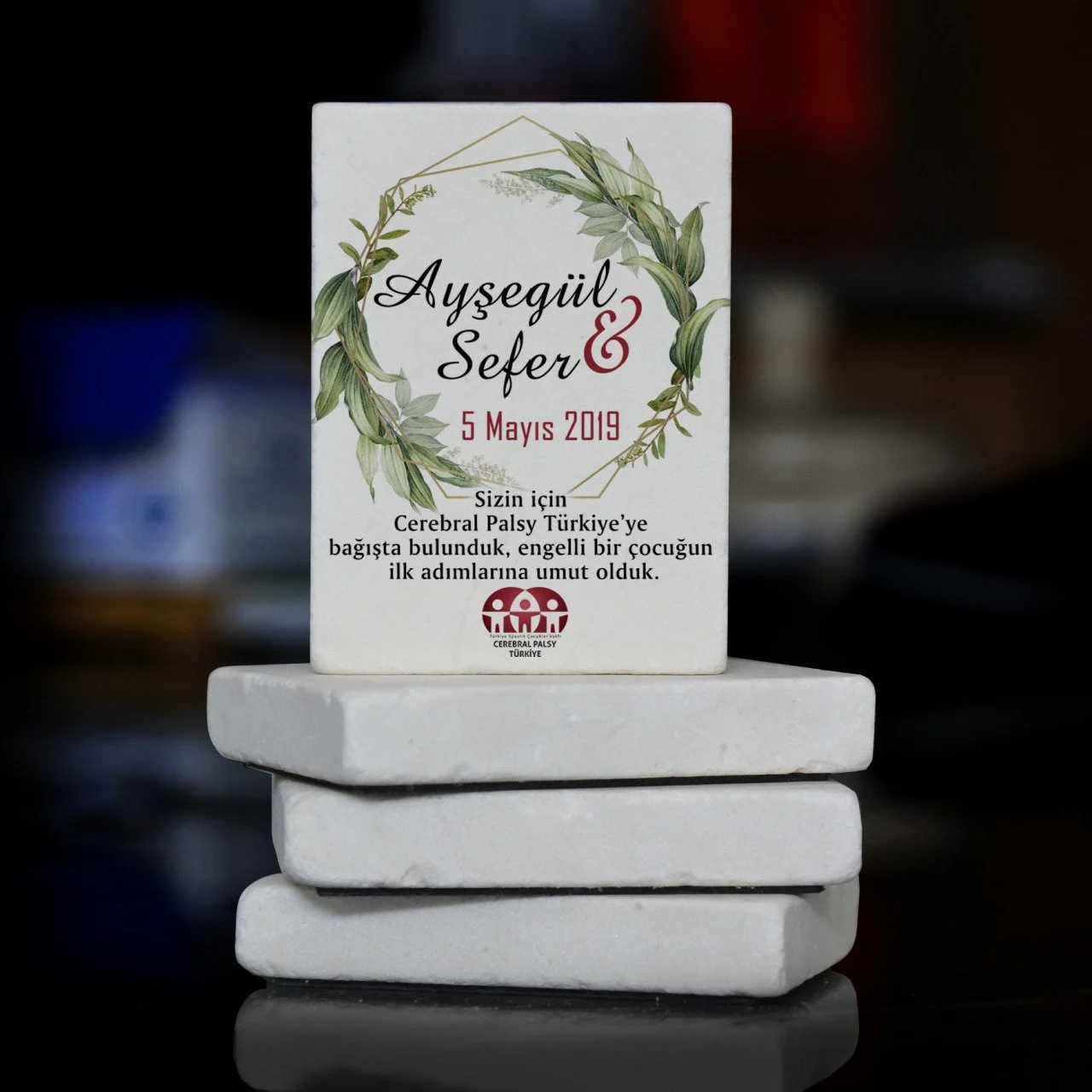 Özel gününüzde hem anlamlı hem de kalıcı bir hatıra istiyorsanız doğal taş üzerine özel baskı ile hazırlanan magnet modelleri tam size göre. Türkiye Spastik Çocuklar Vakfı magnet modellerini isim–tarih ve metinle tamamen size özel tasarlıyor. Magnetler arkasında güçlü mıknatıs bulunuyor. Buzdolabı ya da panolarda yıllarca ilk günkü gibi sergilenebiliyor.
